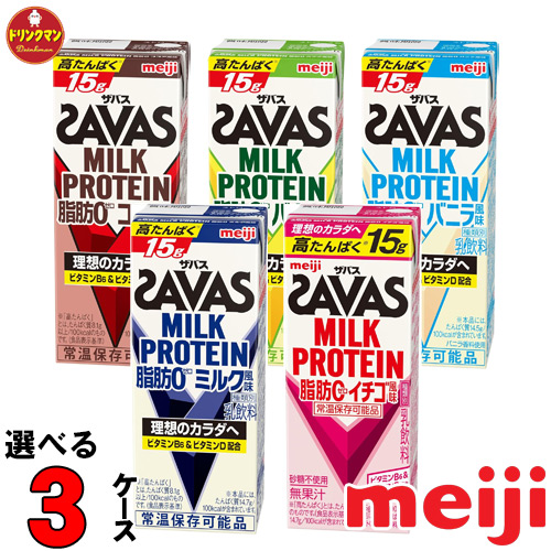 選べる 明治 SAVAS MILK PROTEIN 脂肪0 ザバス ミルクプロテイン 200ml 72本 プロテイン15g 筋トレ ダイエット まとめ買い 常温保存 3ケース