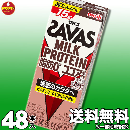 明治 SAVAS MILK PROTEIN 脂肪0 ザバス ミルクプロテイン ココア 味 200ml 48本 プロテイン15g 筋トレ ダイエット 常温保存 2ケース