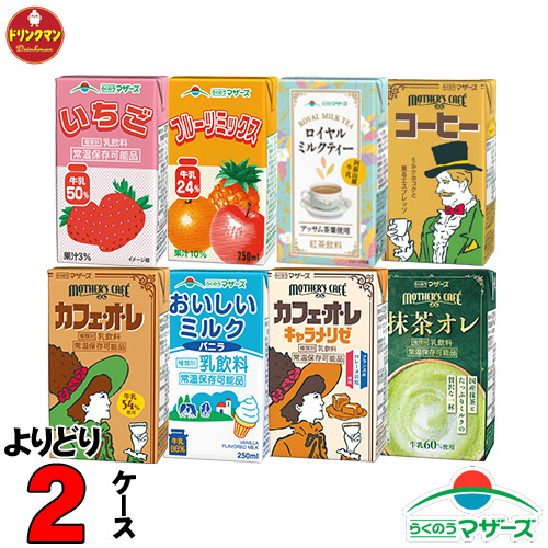 選べる らくのうマザーズ カフェオレ ミルクバニラ いちご 抹茶 ミルクティー 250ml 2ケース 送料無料 一部地域を除く