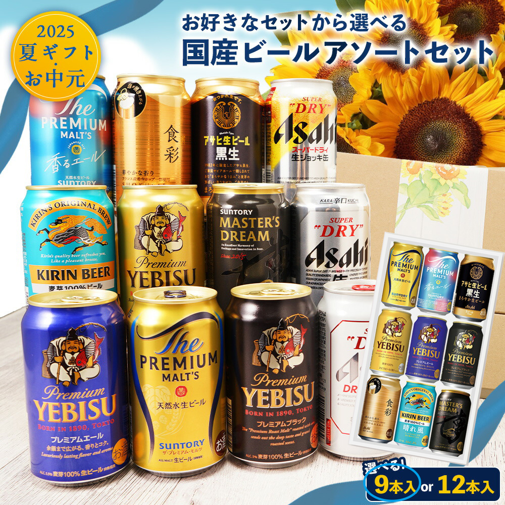 お中元にオススメ 国産 プレミアムビールギフト アソートセット 340ml/350ml 選べる8種類 9本 12本 贈り物 詰め合わせ ギフトセット 飲み比べセット プレゼント アサヒビール キリンビール サントリービール サッポロビール [送料無料]