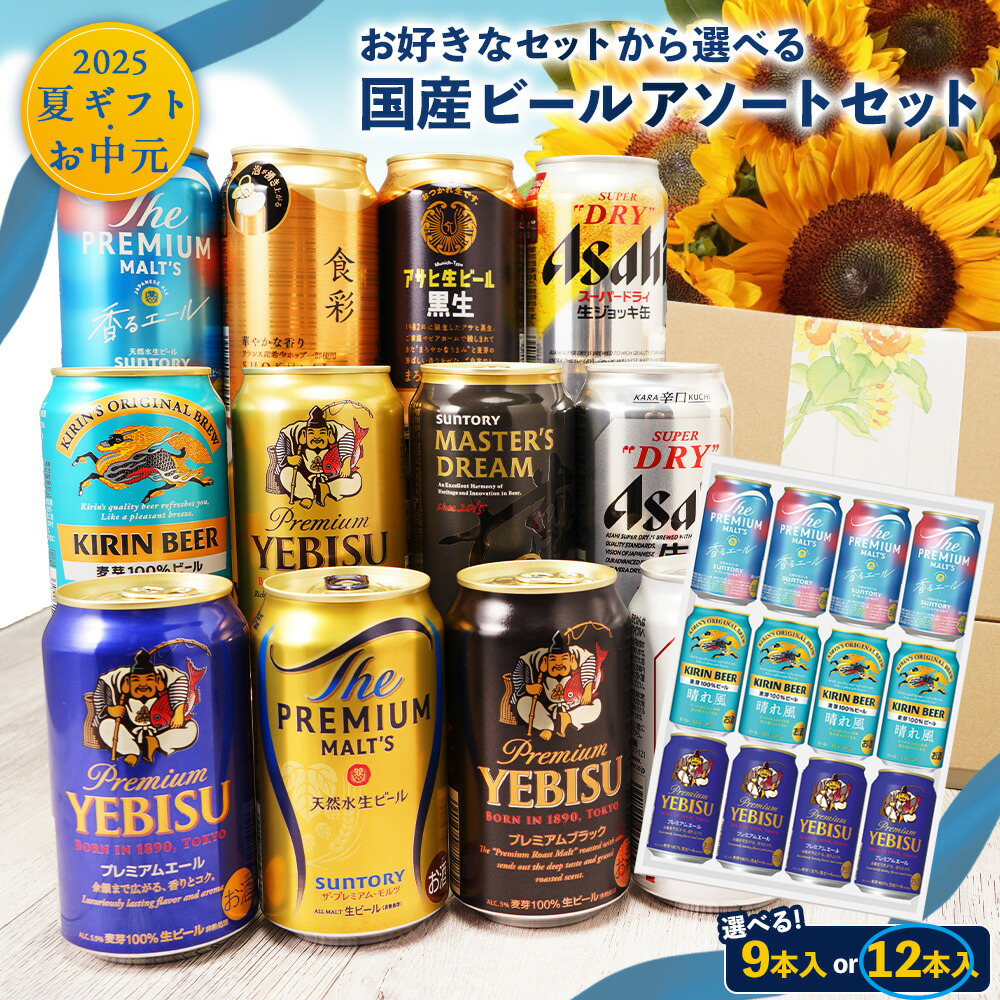 お中元にオススメ 国産 プレミアムビールギフト アソートセット 340ml/350ml 選べる8種類 9本 12本 贈り物 詰め合わせ ギフトセット 飲み比べセット プレゼント アサヒビール キリンビール サントリービール サッポロビール [送料無料]