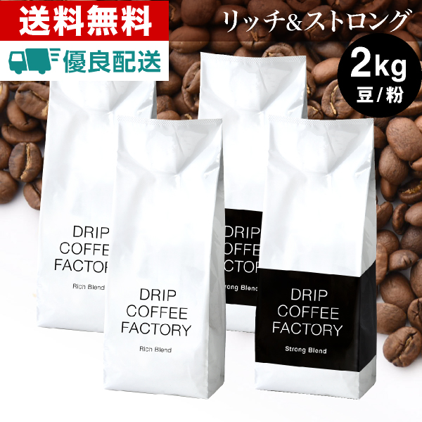 コーヒー豆 2kg リッチブレンド&ストロングブレンド レギュラーコーヒー アソートセット 500g×4袋 コーヒー粉 ドリップコーヒーファクトリー