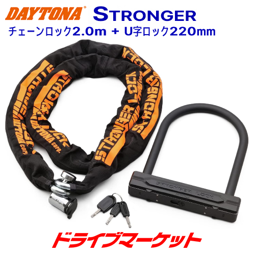 デイトナ 31253 ストロンガーチェーンロック(2.0m)+U字ロック(220mm) 盗難防止ロック バイク用 DAYTONA