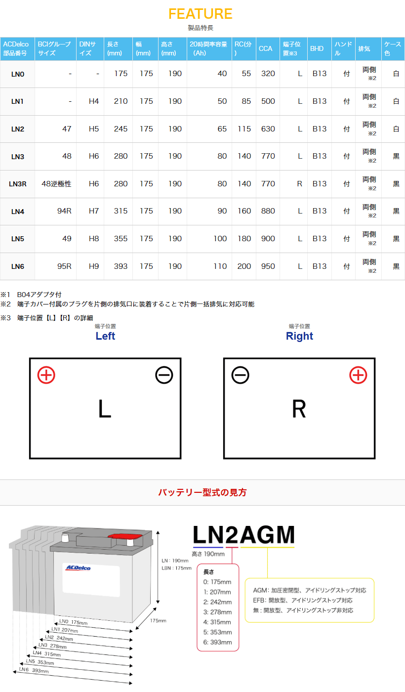 | 6)バッテリーの液量を確認できる白ケース (LN0/LN1/LN2の3品番) |
