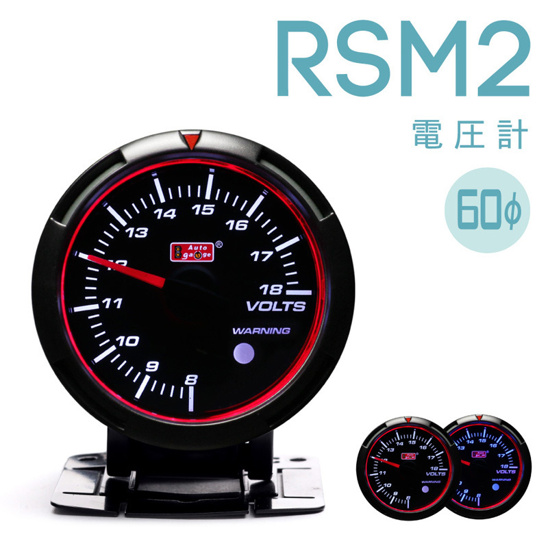 電圧計 オートゲージ RSM2 458 60Φ ブルー/ホワイトLED ブラックフェイス ワーニング 1年保証 エンジェルリング
