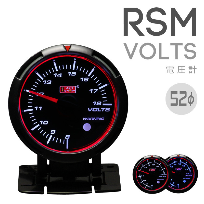 オートゲージ RSM 52Φ 電圧計 ブルー/ホワイトLED ブラックフェイス ワーニング☆1年保証 エンジェルリング