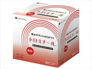 [品番] 792101 [JAN] 4976652005938 [TAIS] [仕様・説明] 特長飲みやすいトロミがつく飲み込みを気にされている方にコメント経済的「いつまでも食事は目で楽しみ、おいしく食べたい。」色みや味を変えることなく、飲み込みやすいトロミがつくトロミナールはこうした願いをサポートします。毎日使うものだから、誰でも簡単にトロミをつけられることにもこだわりました。ダマになりにくく、使いやすい200mLのお茶(20℃)に3gのトロミナールを入れ、数秒放置してからかき混ぜても、ダマにならずにトロミがつきます。高い汎用性各飲料にバランスよくトロミづけが可能です。時間・温度に安定溶かした後は速やかに粘度がつきます。温度による粘度の変化はほとんどありません。おいしさそのまま無味無臭で、透明性が高いので、食品本来のおいしさを損ないません。材質・原材料<原材料>デキストリン、難消化性デキストリン、増粘多糖類、トレハロース、D-ソルビトール、塩化カリウム<栄養成分表示>1包(3g)あたりエネルギー・・・9.0kcalたんぱく質・・・0.02g脂質・・・0g糖質・・・1.78g食物繊維・・・0.92gナトリウム・・・22mgカリウム・・・53mgリン・・・1.8mg規格3g×50包入賞味期間/使用期間<賞味期限>2年使用方法<使用方法>1.トロミをつけたい食品をかき混ぜながら少しずつトロミナールを加えてください。2.通常、加えてから2〜3分でトロミがついてきます。3.トロミや温度を確認してからお召し上がりください。ご使用のポイント●最初からトロミのあるものや特に熱いものは、ダマができやすいので注意してかき混ぜてください。●トロミがつきにくい食品の場合、そのまま室温で10分程度放置し、再度良くかき混ぜてください。●トロミがつきすぎた場合は同じ飲み物を加えて調整してください。また、トロミが足りない [備考] [発売日] [メーカー お問合せ番号] ファイン /p>