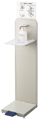 【カタログあり】【お見積もりOK】【送料無料】★30%OFF★●ペダル式でポンプ部に手を触れることなく噴霧できます。●市販のポンプ付ボトルに合わせて調節できる可動式。(適用ボトルサイズ:最大W119×D99×H200〜248mm)●トレー付きで床に薬液がこぼれません。●サイズ:W340×D366(506)×H1430mm●重量:10.4kg●材質:本体=スチール(アクリル焼付塗装)、トレー=樹脂※ポンプ付ボトルは付属していません。医療機器対象外
