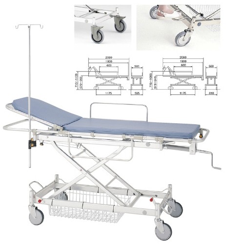 【カタログあり】【お見積もりOK】【送料無料】★8%OFF★●キャスターは【1】ダブルロックと【2】トータルロックからお選びいただけます。●【2】トータルロックは、4輪全てのロックと旋回のみロックの2パターンが可能です。●ガートル架セット、酸素ボンベ架、カゴを標準装備。●サイズ:W595×L2060×H570〜955mm●重量:約42kg●使用者体重(目安):100kg●材質:フレーム=アルミ、マット=ウレタン、張地=ビニールレザー●キャスター:φ150mm●背上げ:0〜75°●カラー:ライトブルー●付属品:ガートル架セット、酸素ボンベ架、カゴ医療機器対象外