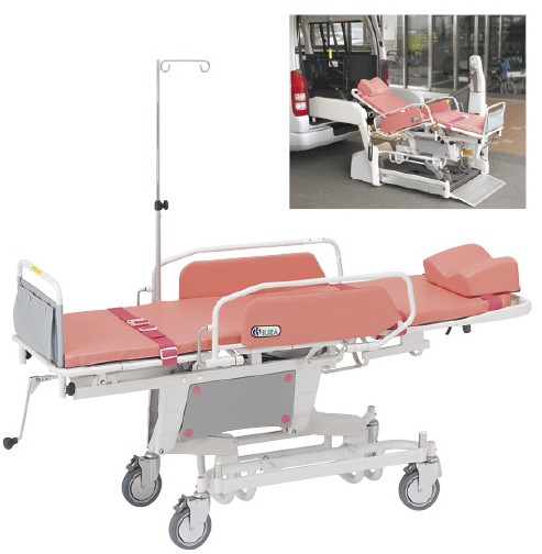 【カタログあり】【お見積もりOK】【送料無料】●デイサービスや介護タクシーなどのリフト付福祉車両に搭載できるストレッチャーです。●背腰連動の背上げ機構ですので、背上げ時に座角がつけられます。●リフト付福祉車両装備の車いす固定フックを使用できる安心フレーム形状。●キャスターは大径φ150mmで、屋外でも安定した走行が行えます。医療機器対象外
