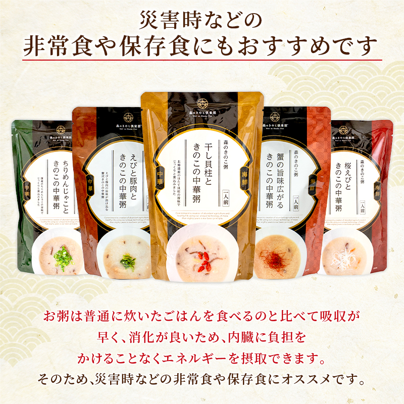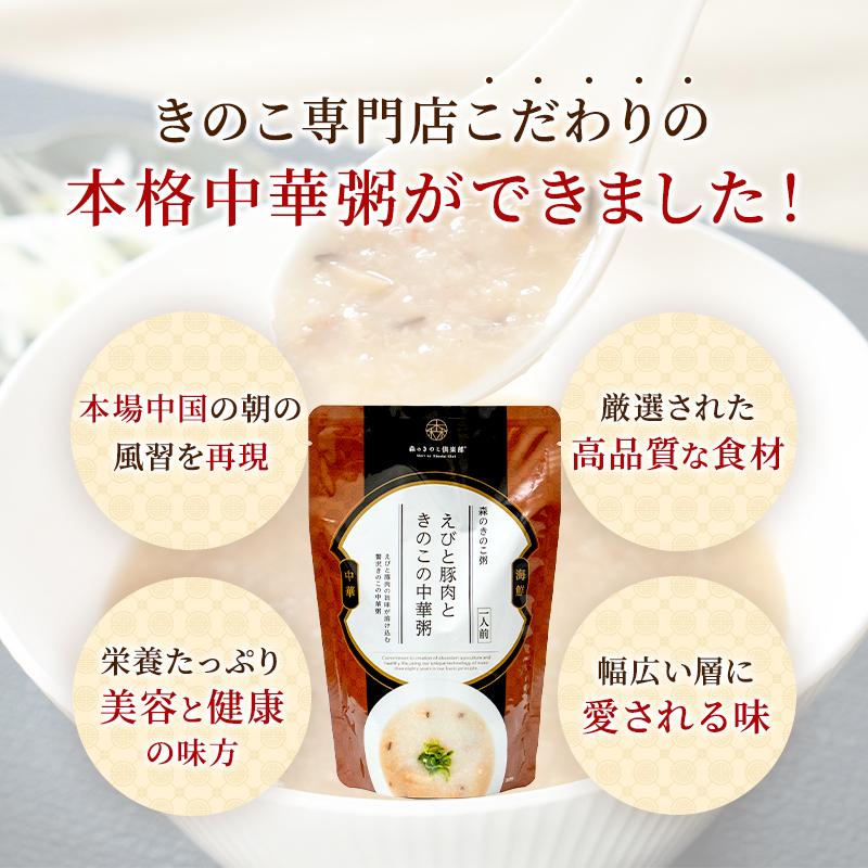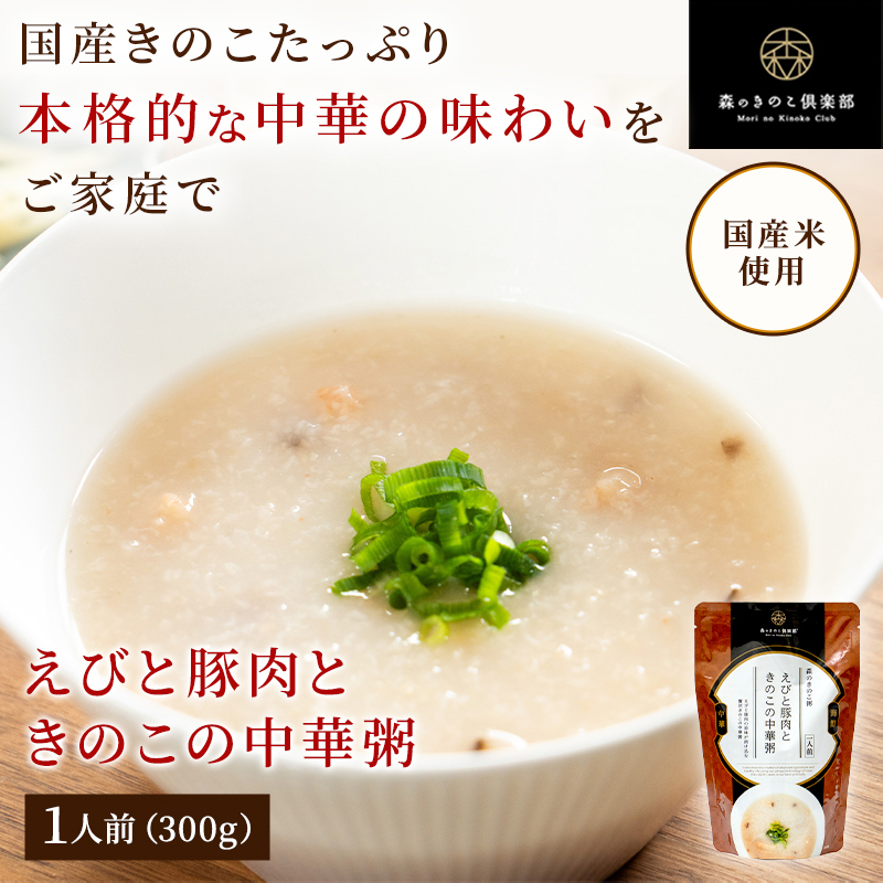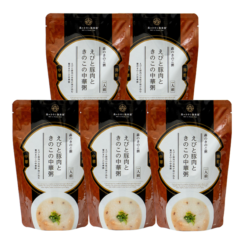 お粥 おかゆ 森のきのこ倶楽部 えびと豚肉ときのこの中華粥 森のきのこ粥 | 一人前×5食セット 300g 雑炊 レトルト うるち米 椎茸 えび 豚肉 海鮮