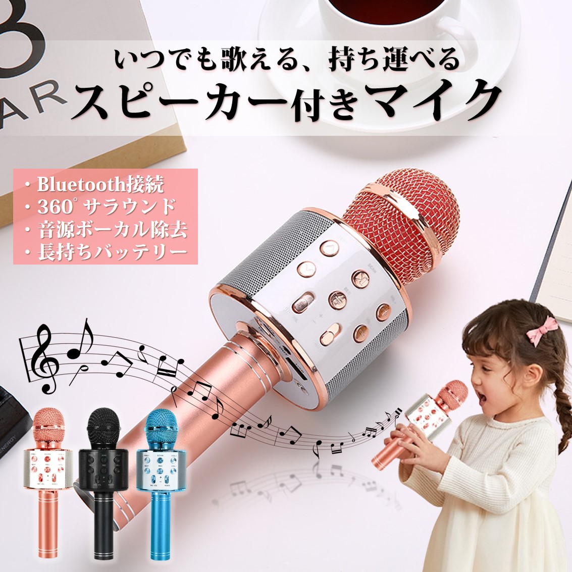 カラオケマイク ワイヤレスマイク Bluetoothマイク スピーカー付き 高音質 USB充電 録音 ボーカルカット エコー 子供 クリスマス 誕生日 パーティー プレゼント