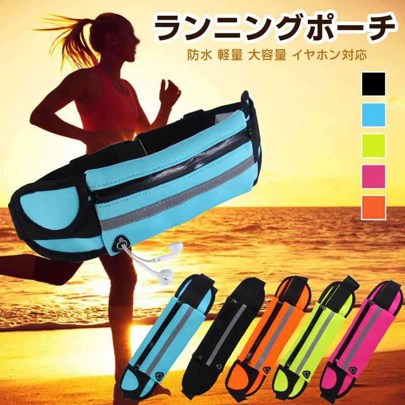 ランニングポーチ ウエストポーチ 大容量 防水 軽量 イヤホン対応 ペットボトルホルダー付き 蛍光カラー ウエストバッグ ランニング ジョギング スポーツ 旅行