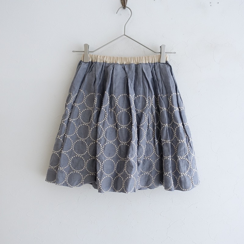 ミナペルホネン mina perhonen *tambourineスカート*130麻リネン刺繍キッズ1121【80L12】