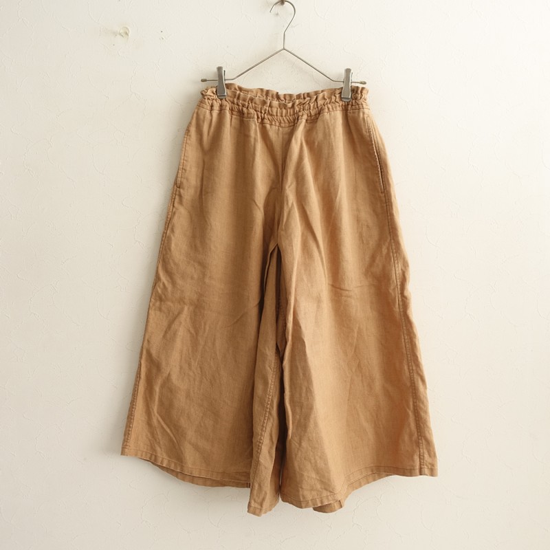 ヴラスブラム Vlas Blomme *ハカマパンツ*Fリネン麻ブラウン茶ゴムタックワイドイージーキュロット(25-2511-387)【41L52】
