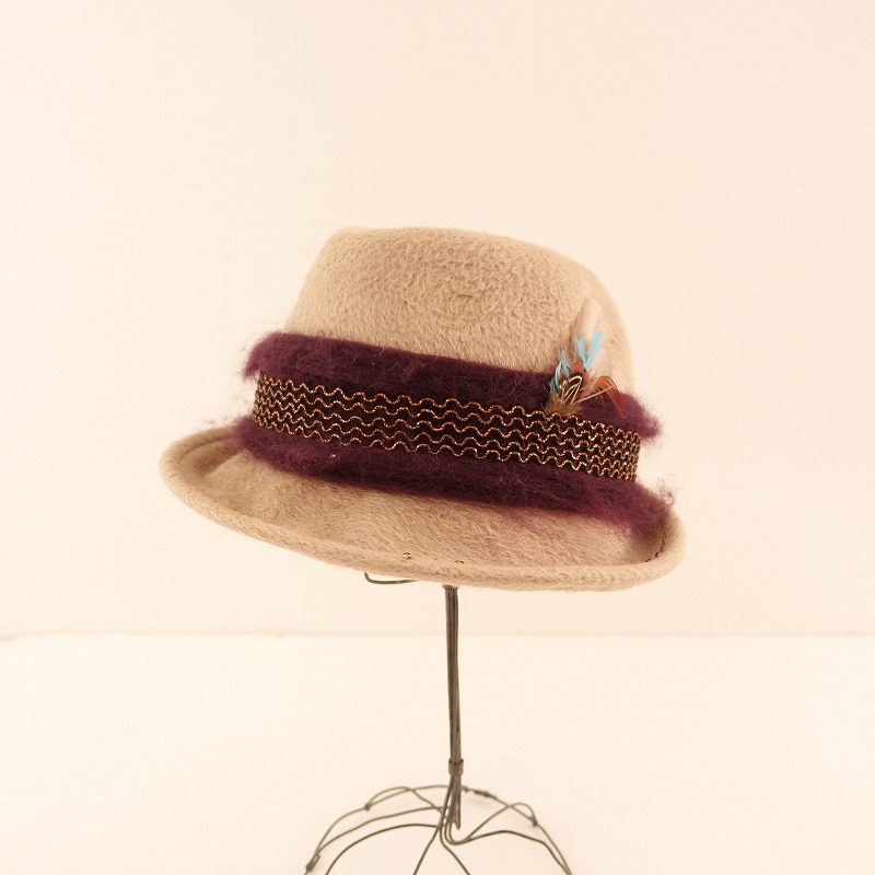 カシラ CA4LA *起毛ウール フェザー中折れハット*グレーベージュ帽子0123(ha84-2301-133)【82A32】