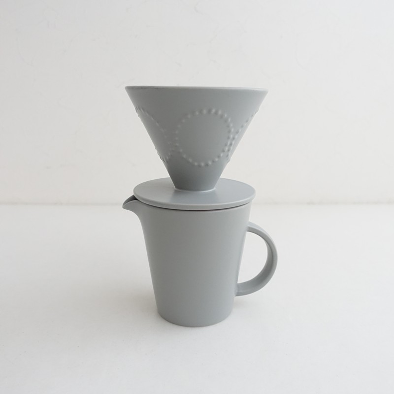 カラーなど:mina perhonenのtambourine コーヒードリッパー grayです。土に含まれる粒子が表面に浮かび上がるtambourineの器シリーズです。