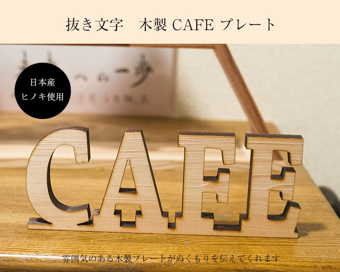 木製 CAFEプレート サインプレート スタンドタイプ レーザー加工 カフェ ドアプレート 抜き文字 ハンドメイド 送料無料