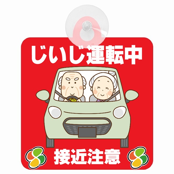 セーフティサイン じいじ運転中 おじいちゃん 接近注意 レッド イラスト 高齢者マーク シルバーマーク 安全運転 吸盤 送料無料