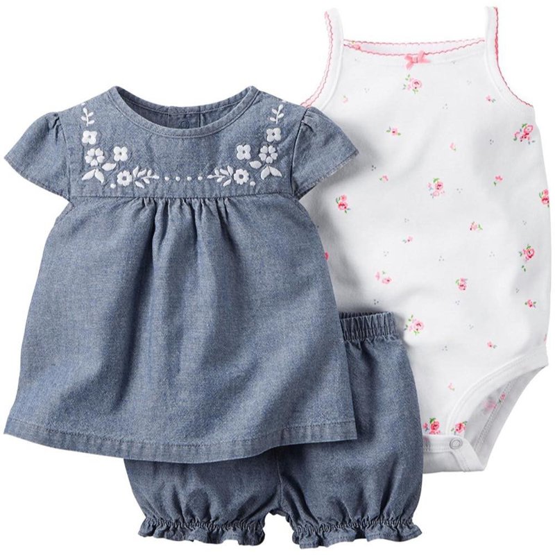 【並行輸入品】カーターズ ロンパース carter's 2016年春夏新作 女の子用デニムダンガリー花刺繍半袖チュニックお出かけ用豪華