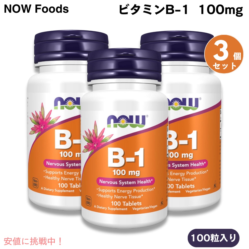 【並行輸入品】[3個] ナウフーズ NOW Foods ビタミン B-1 100mg 100粒 タブレット チアミン #0446 Vitamin B-1 100 mg 100 Tablets