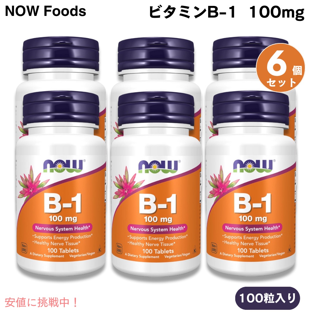 【並行輸入品】[6個] ナウフーズ NOW Foods ビタミン B-1 100mg 100粒 タブレット チアミン #0446 Vitamin B-1 100 mg 100 Tablets