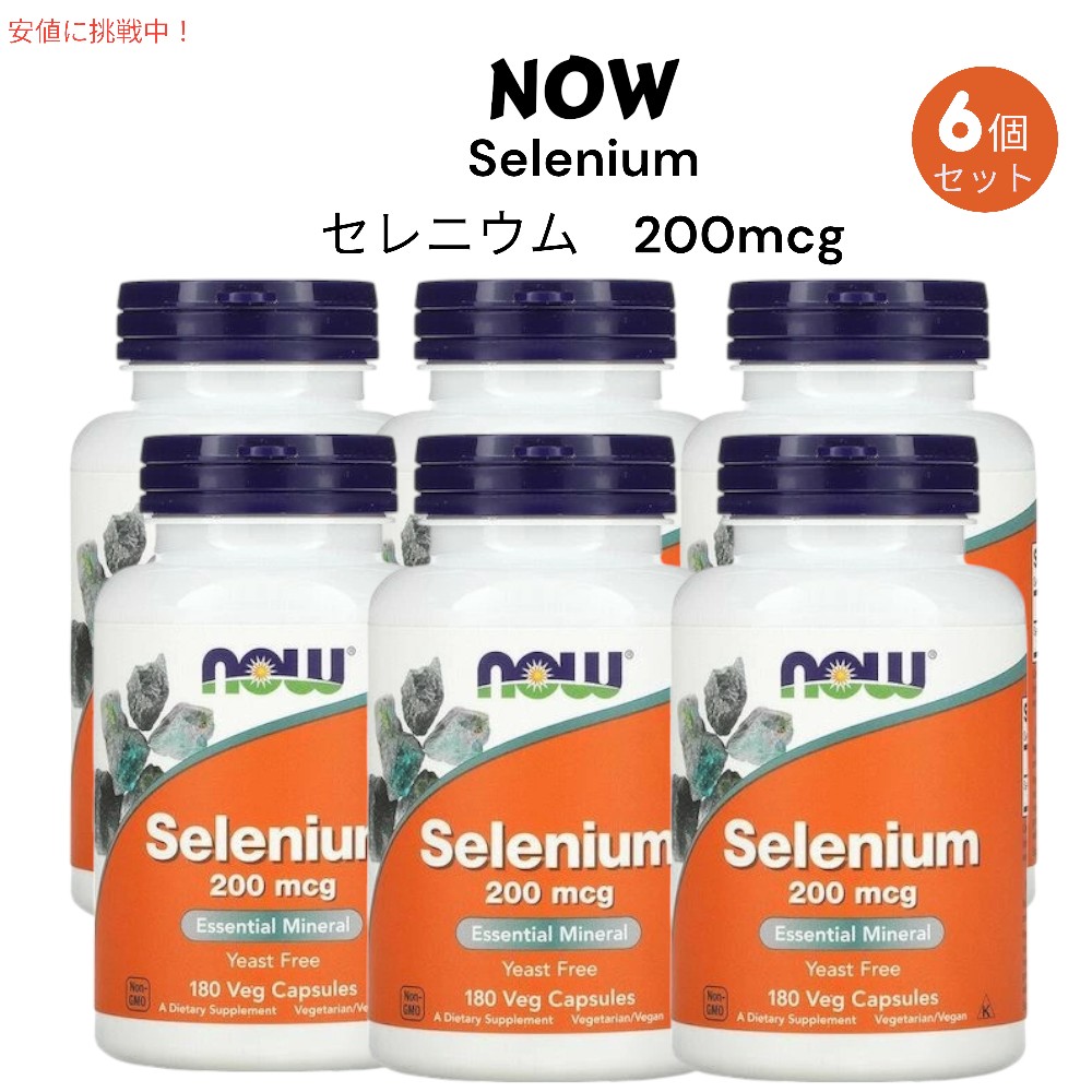【並行輸入品】【6個セット】Now Foods Selenium 200 mcg 180 Veg Capsules / ナウフーズ セレニウム(セレン) 200mcg 180粒(ベジカプセル)
