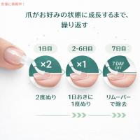 使い方:自爪に一日おきに重ねて塗布し、一週間後に除去してください。