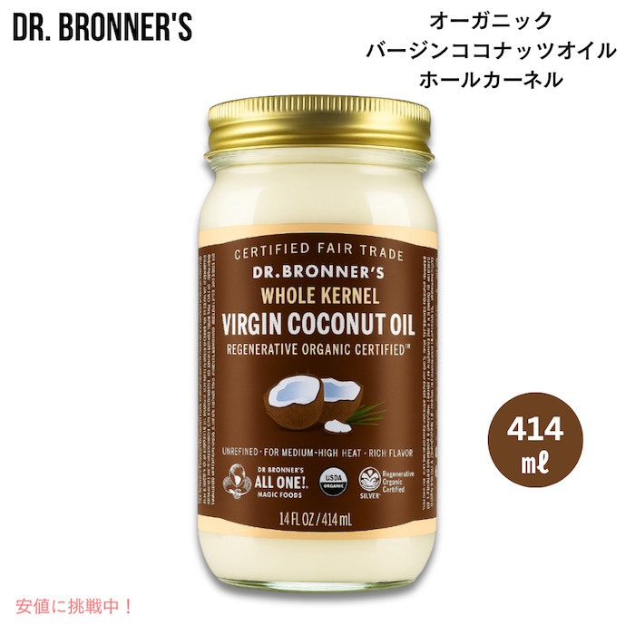 【並行輸入品】ドクターブロナー オーガニック バージンココナッツオイル ホールカーネル 414ml Dr. Bronner's Organic Virgin Coconut Oil 14oz