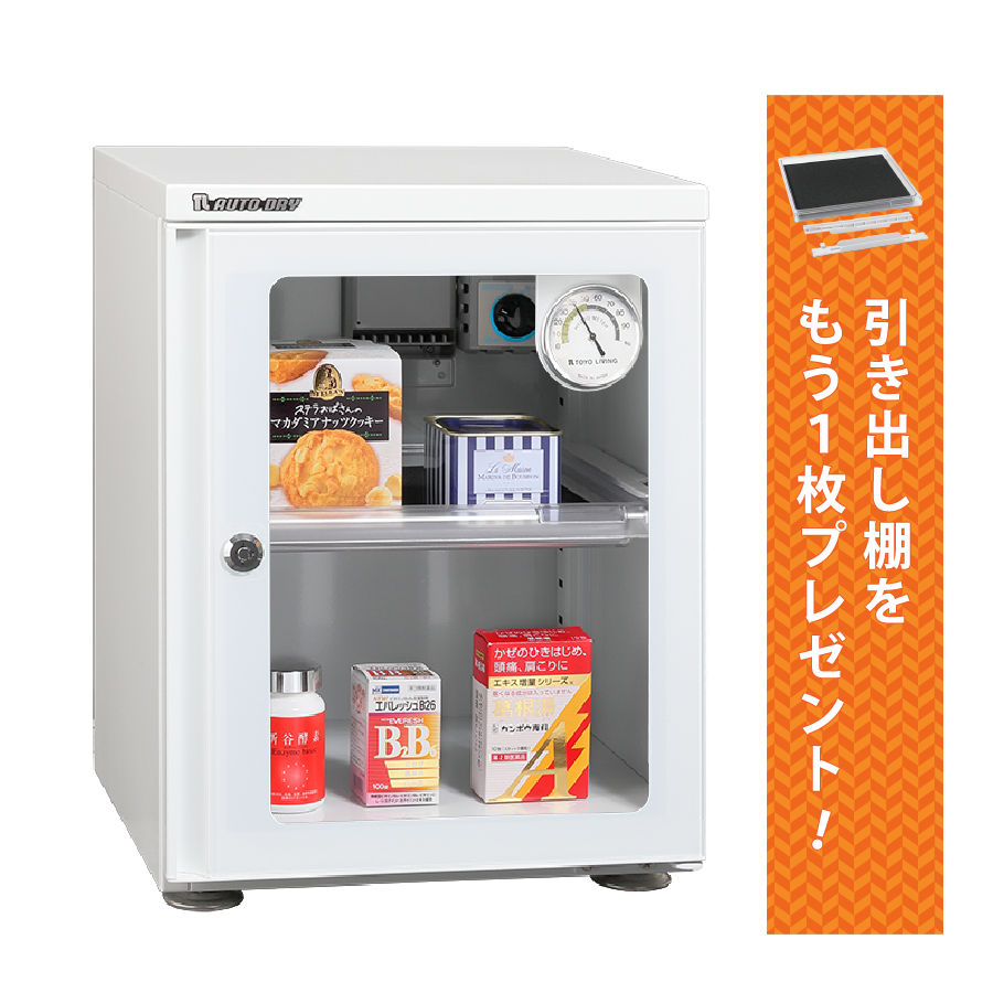 【特別企画】東洋リビング防湿庫 オートドライ ED-41WA+引き出し棚もう1枚セット!
