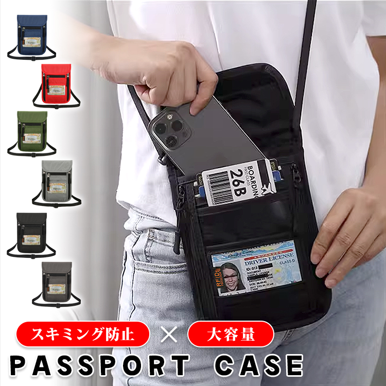 パスポートケース マルチケース スキミング防止 首下げ 薄型 軽量 海外旅行 出張 防犯対策 ネックポーチ セキュリティケース 貴重品 防水 セキュリティポーチ