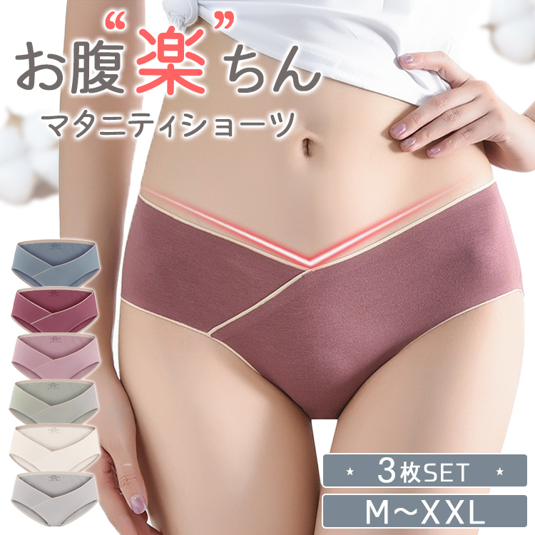 [3枚セット]マタニティ ショーツ 可愛い 下着 ローライズ V字 出産準備 まとめ買い レディース パンツ 無地 女性 シンプル フィット感 産前 産後 大きいサイズ