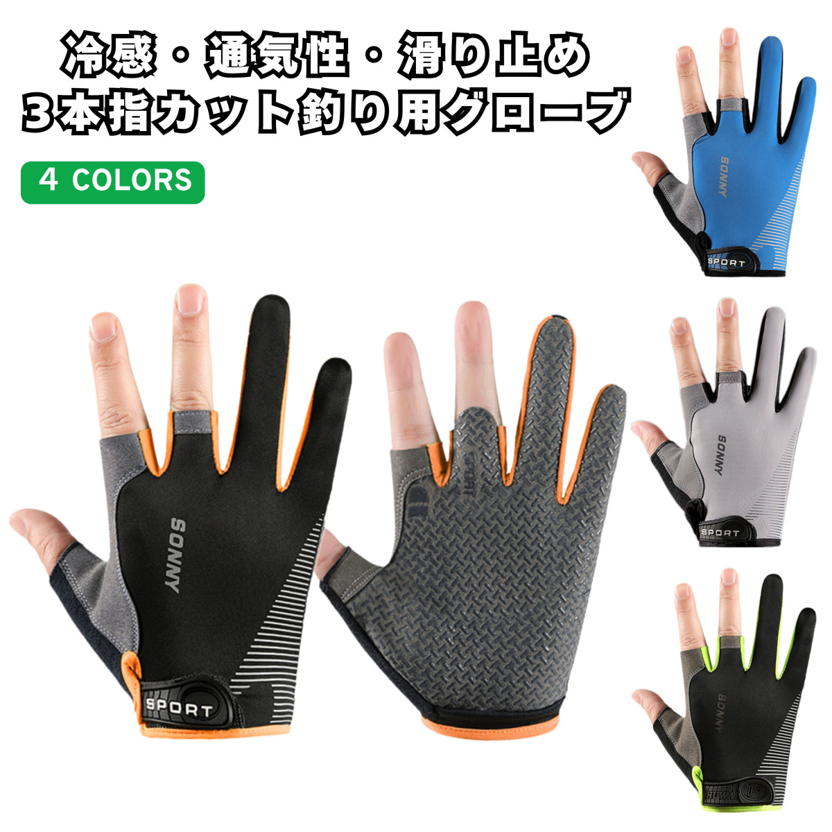 【送料無料】フィッシンググローブ 3本指カット 釣り用手袋 UVカット 冷感 滑り防止 3フィンガー 指3本 指切りタイプ アウトドアグローブ 薄手 日焼け防止 釣り