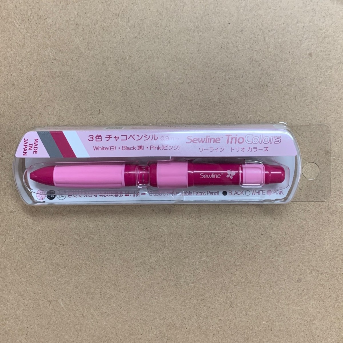 黒は淡色布、白は濃色布、ピンクは両方の布に適しています。