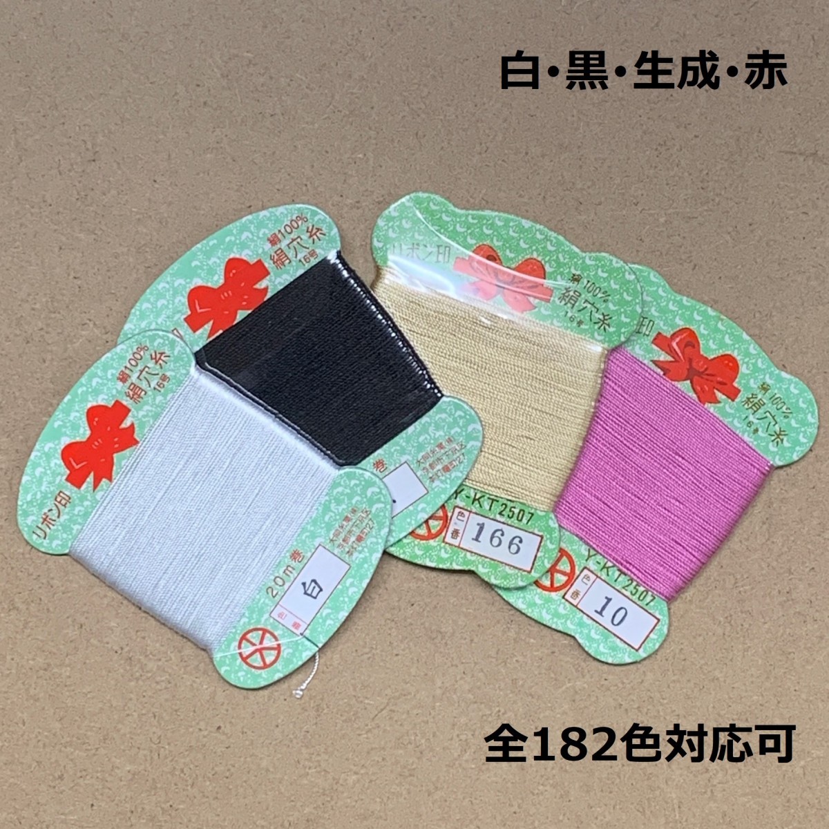 リボン印 絹穴糸 カード巻 20m 大同糸業 白・黒・生成・赤 郵便可
