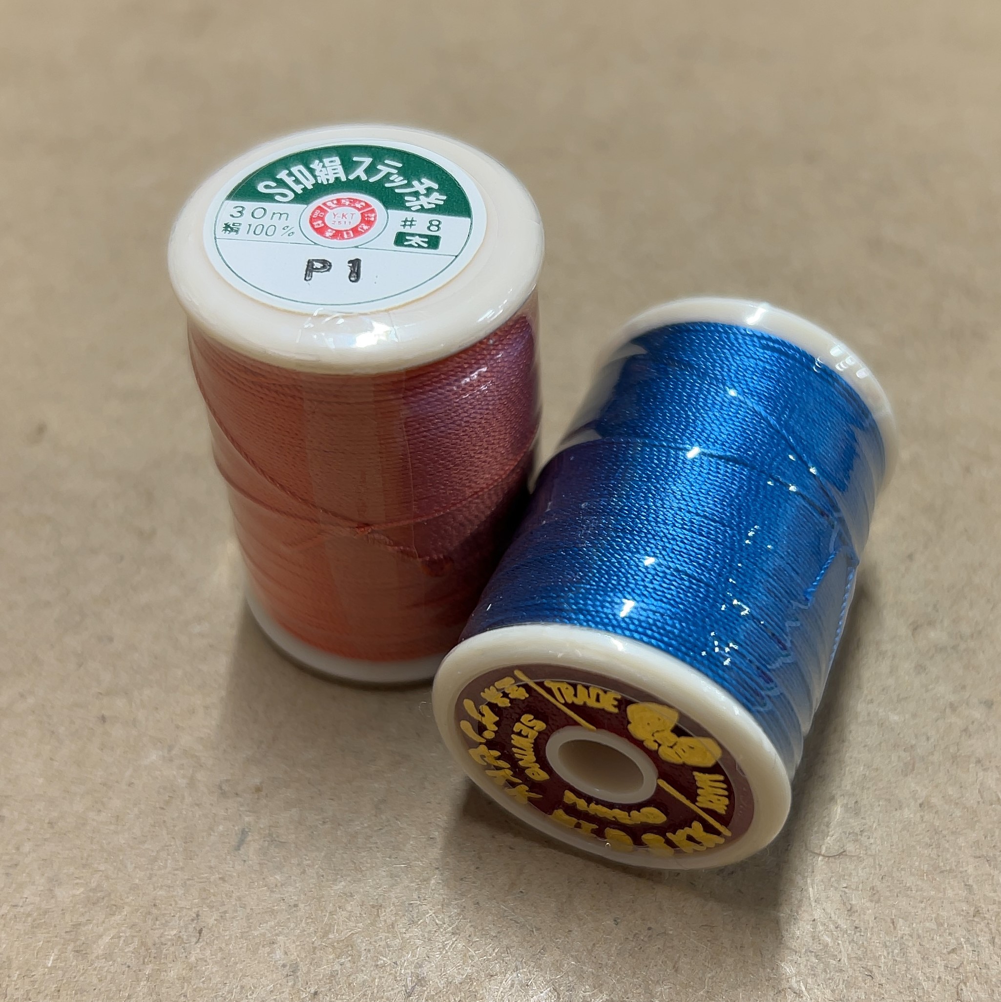 【在庫処分の為特価!!】S印太ステッチ (絹穴糸) 8番(16号) 30m コマ巻き 郵送可