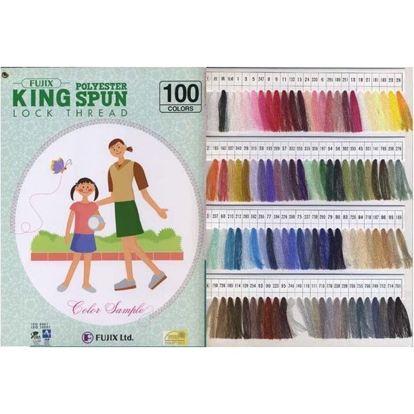 フジックスキングスパンロック糸100色の実物見本帳です。古い在庫のため汚れがございます。