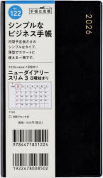 2026年版 ニューダイアリー スリム 3 [黒] 手帳判 マンスリー2026年1月始まり No.122