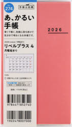 2026年版 リベルプラス 4 [ドルチェ・ピーチ] 手帳判 マンスリー2026年1月始まり No.274