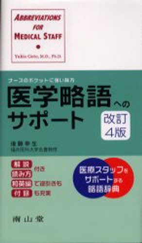 本 ISBN:9784525517847 後藤幸生/著 出版社:南山堂 出版年月:2004年04月 サイズ:312P 19cm 看護学 ≫ 辞典・事典・用語集・語学 [ 用語集 ] イガク リヤクゴ エノ サポ-ト ナ-ス ノ ポケツト ニ ツヨイ ミカタ ナースのポケットに強い味方 登録日:2013/04/03 ※ページ内の情報は告知なく変更になることがあります。