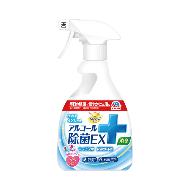 アース製薬 らくハピ アルコール除菌 EX 本体 420mL アルコール消毒液 除菌 ウイルス 食品原料100% 無添加