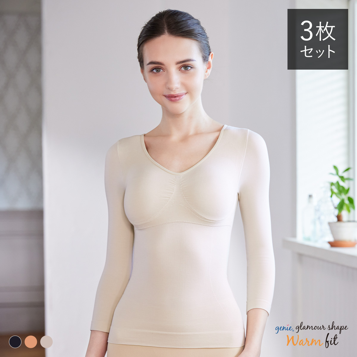 ジニエ グラマーシェイプウォームフィット 3枚セット ジニエ 補正下着 ブラジャー インナー 長袖 あったかインナー 吸湿発熱