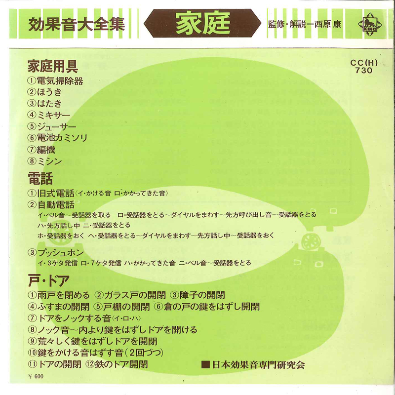 7" 日本効果音専門研究会 効果音大全集 家庭 CCH730 KING /00080