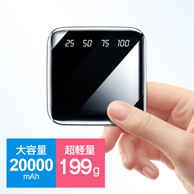 MOTTARI モバイルバッテリー 20000mAh 超小型 大容量 2.1A急速充電 スマホ充電器 type-c タイプc蓄電対応 残量表示 懐中電灯 iPhone/Android各種対応 PSE認証済