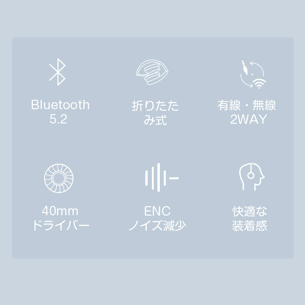 Bluetooth ヘッドホン 2WAY 有線&無線兼用 ワイヤレスイヤホン 密閉型 折り畳み式 ENCノイズキャンセリンク 通話可 マイク付き 3.5mm 軽量 20時間連続再生