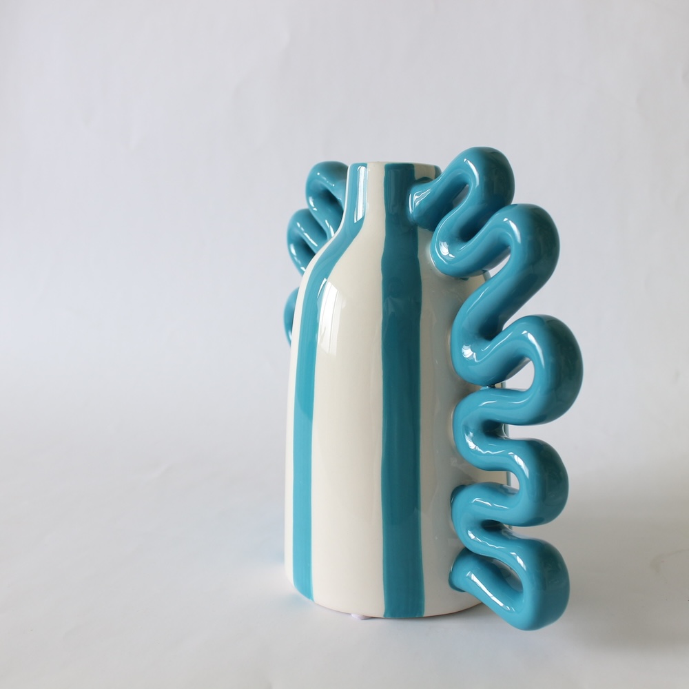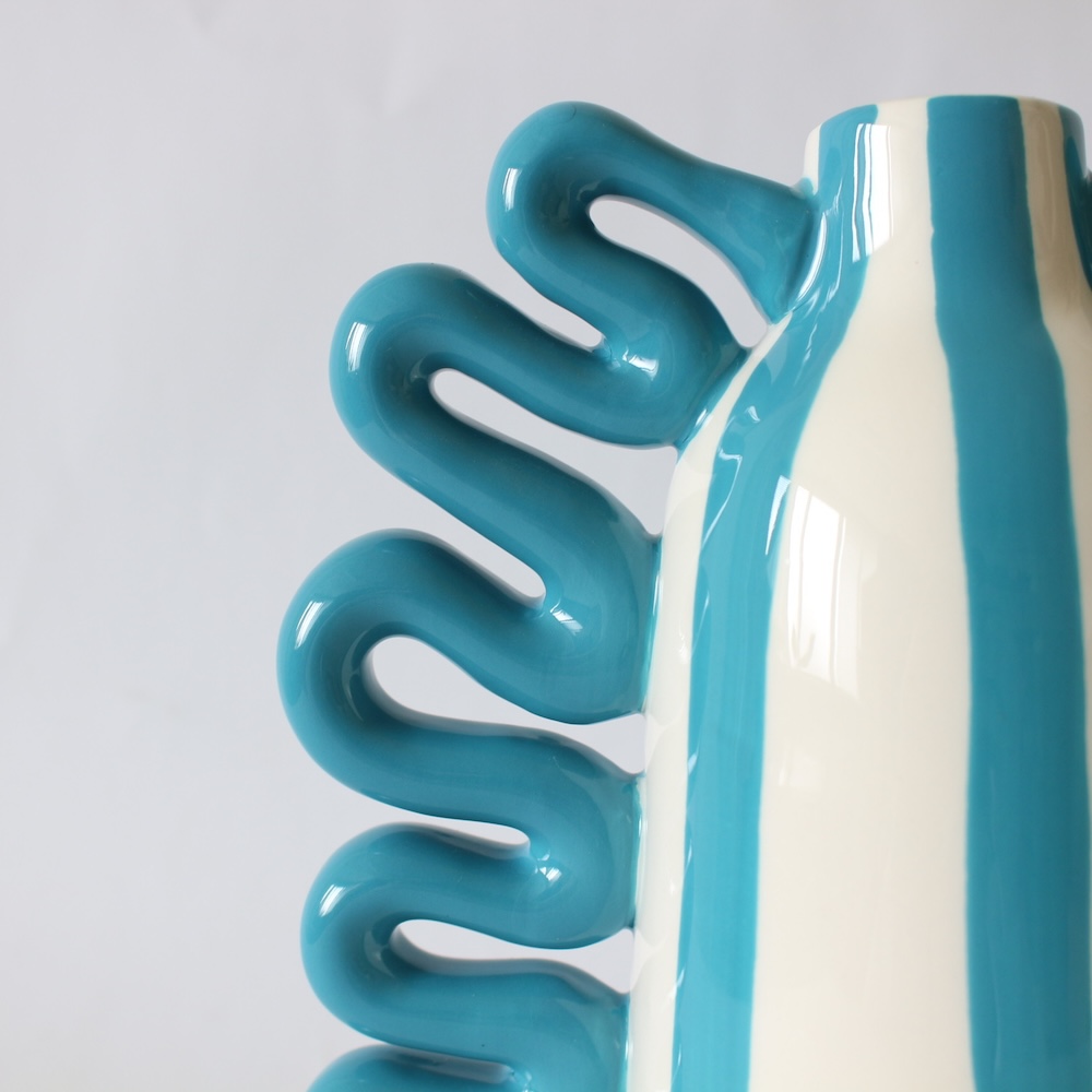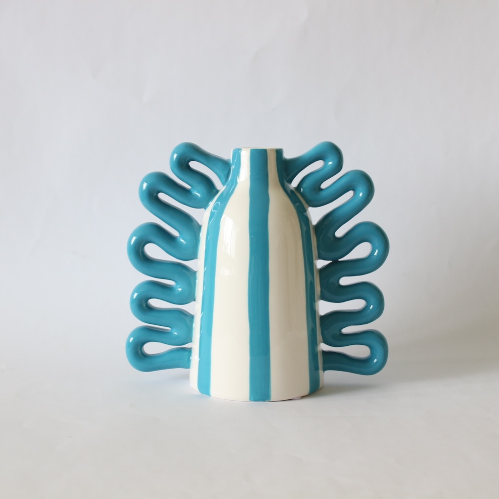 QUE RICO ケリコ ブランド ニコラス レイアス バイラリーナス 花瓶 フラワーベース 陶器 セラミック ブランド ブルーストライプ アートオブジェ