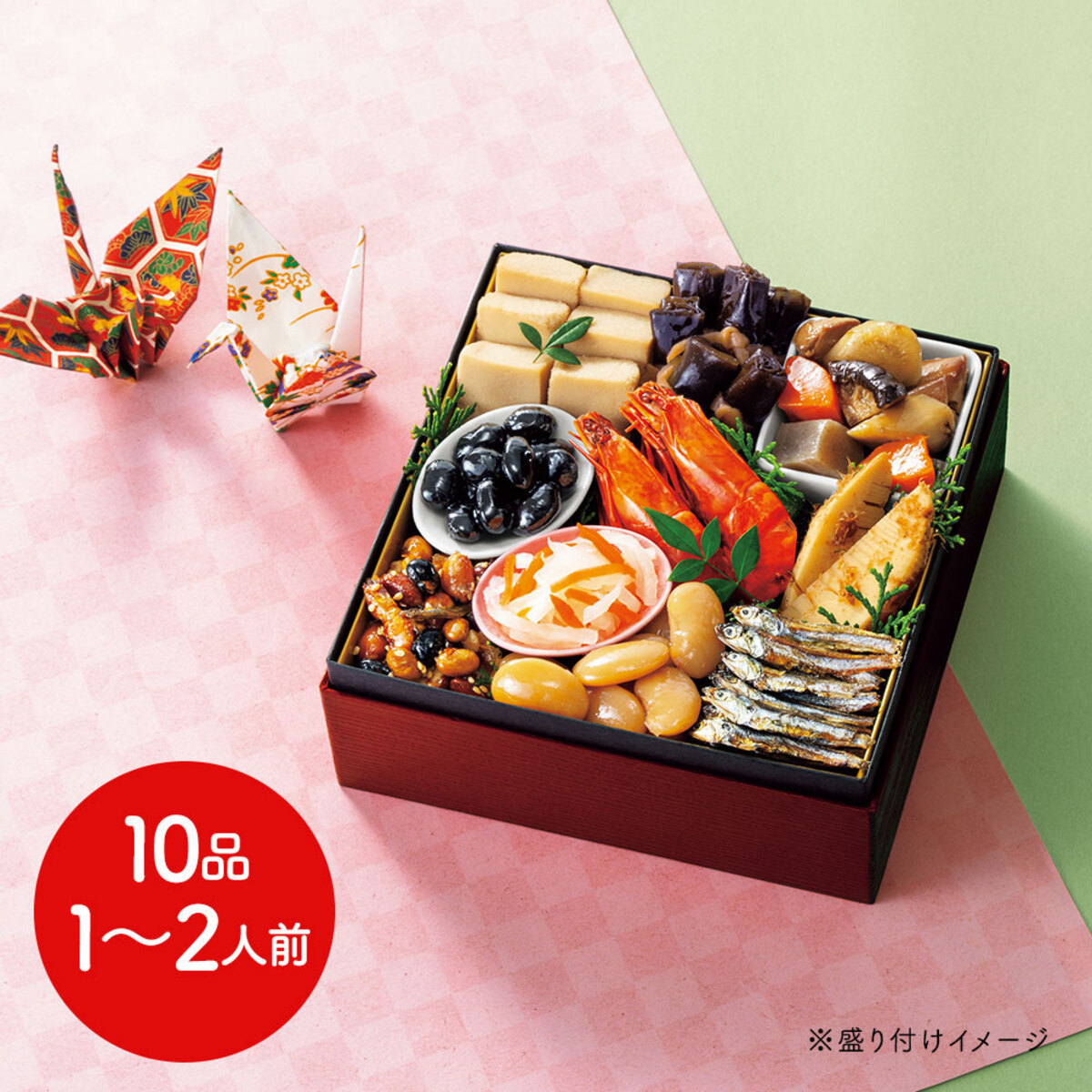 ・規格:10品、1〜2人前(重箱無し、盛り付け必要)