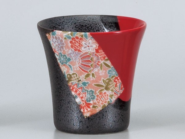 酒器 フリーカップ/ 黒赤ヌリ分カット絵カップ /焼酎 日本酒 ノンアルコール 梅酒 業務用 家庭用 ギフト プレゼント 贈り物 cup without handle