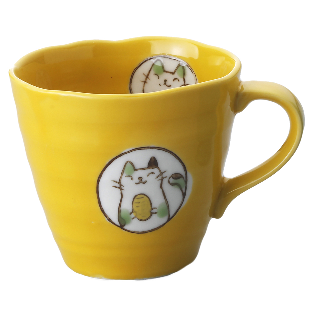 金運UP 商売繁盛 かわいい ねこのマグカップ カップ/ 風水猫マグ(黄) /コーヒーマグ 幸運 縁起