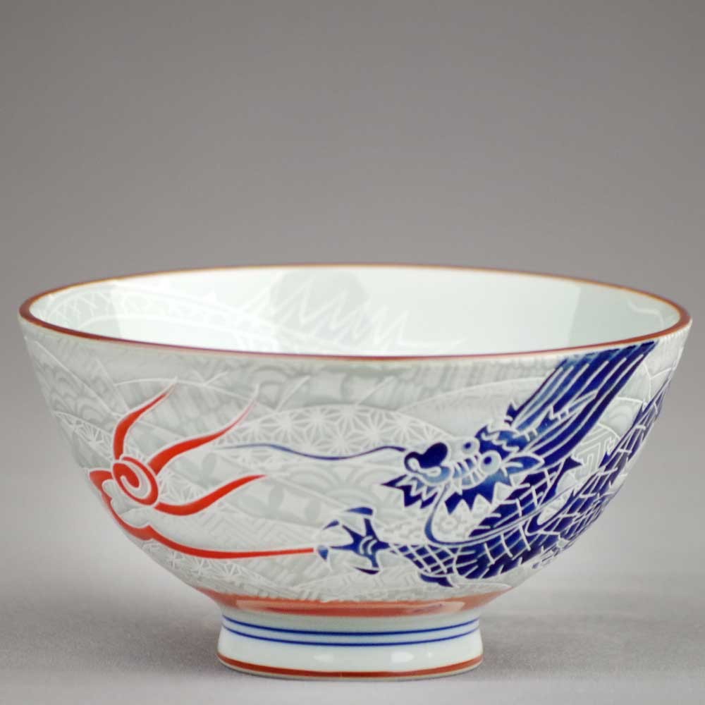 茶碗 飯碗/ 撥水 龍神 茶碗 中平 (赤) /ドラゴン 竜 飛龍 純和風